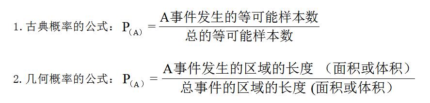2.区别:古典概率研究的是有限个等可能事件发生的概率;几何概率研究的是无限个等可能事件发生的概率。